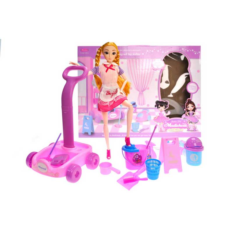 Лялька з набором для прибирання та аксесуарами для сюжетно-рольової гри.