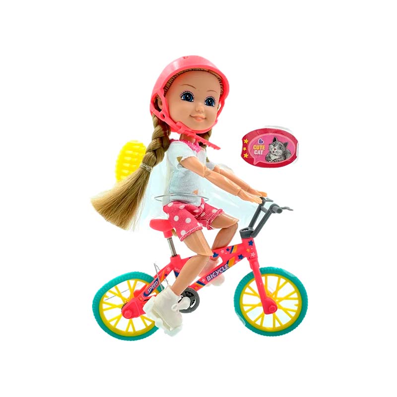 Чарівний набір для захопливих пригод: стильна лялька, готова вирушити на прогулянку разом зі своїм велосипедом. Цей комплект пробуджує уяву, запрошує до сюжетної гри та створення власних історій.