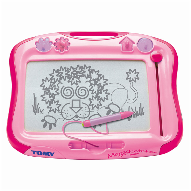 Магнітна дошка для малювання Megasketcher рожева має унікальний екран, який дозволяє художникам-початківцям малювати чіткі зображення. Малюнки швидко зникають завдяки важелю-ластику. Є ручка для малювання, а також чотири фігурні штампи.Юні художники можуть малювати творчість без паперу. Додайте візерунки до шедевра за допомогою 4 магнітних штампів, що входять у комплект. Просто зітріть екран за допомогою повзунка, щоб почати заново. Дошка має міцну рожеву оправу.Особливості• Ручкою можна малювати як товсті, так і тонкі лінії. • Повзунок збоку дозволяє очистити малюнок і почати все спочатку.• Ручка приєднана до дошки мотузкою, щоб не загубити.• Чудова іграшка для дому та дороги: в машині, літаку чи поїзді.• В комплекті: дошка для малювання, 4 фігурні штампи, 1 спеціальна ручка.Магнітна дошка для малювання Megasketcher від TOMY підходить хлопчикам і дівчаткам від 3 років.