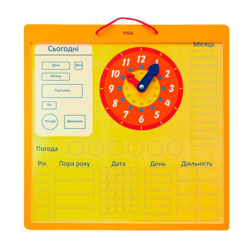 Магнітний календар Viga Toys із годинником українською мовою (50377U)