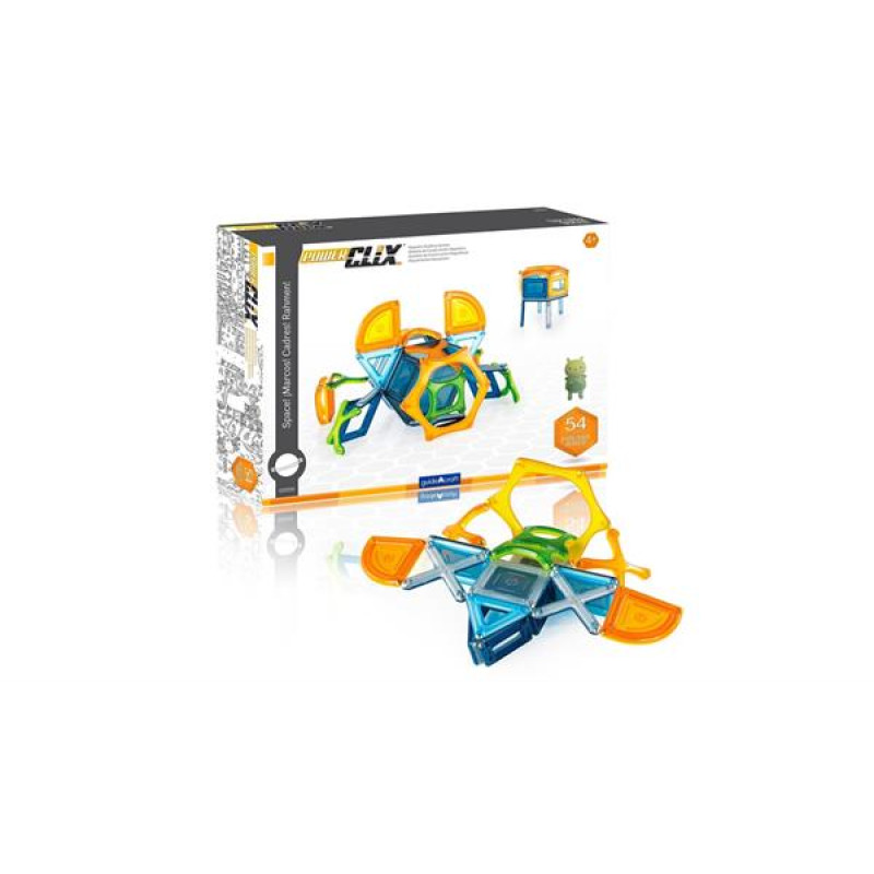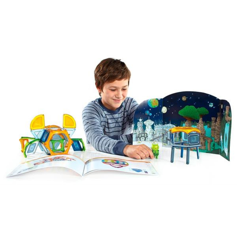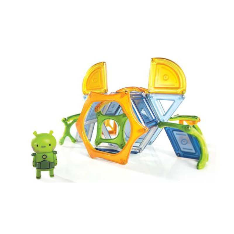 Магнітна іграшка-конструктор космічної тематики із легкою системою з'єднання елементів. У комплекті кольорова брошура із прикладами моделей, що також включає оригінальний комікс. У наборі декорації та фігурка космічного чоловічка для цікавої гри. Із цим конструктором діти зможуть розіграти пригоди із космічним чоловічком та його друзями, міжпланетними кораблями та прибульцям, яких вони самі створили. Набір розвиває інженерні навички, просторове мислення, творчу уяву. Конструктор підходить для рольових ігор. Рекомендований вік: від 5 років.