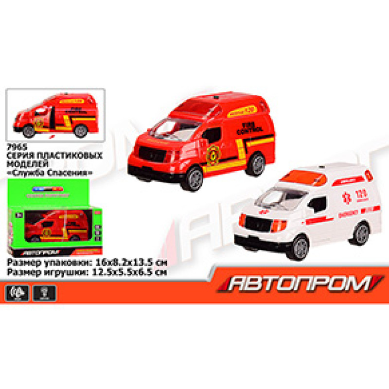 Машина батар "АВТОПРОМ" "Служба порятунку", 2 види, відкр.двері, світло, звук, в кор.16 * 8 * 13 см