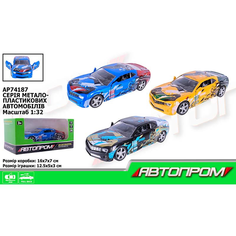 Машина мет. АВТОПРОМ 1:32 з відчиняються дверима – високоякісна металевий модель автомобіля в масштабі 1:32, що ідеально підходить для колекціонування та гри. Модель оснащена функцією відкривання дверей, що додає ще більше реалістичності та дозволяє насолоджуватися деталями конструкції.