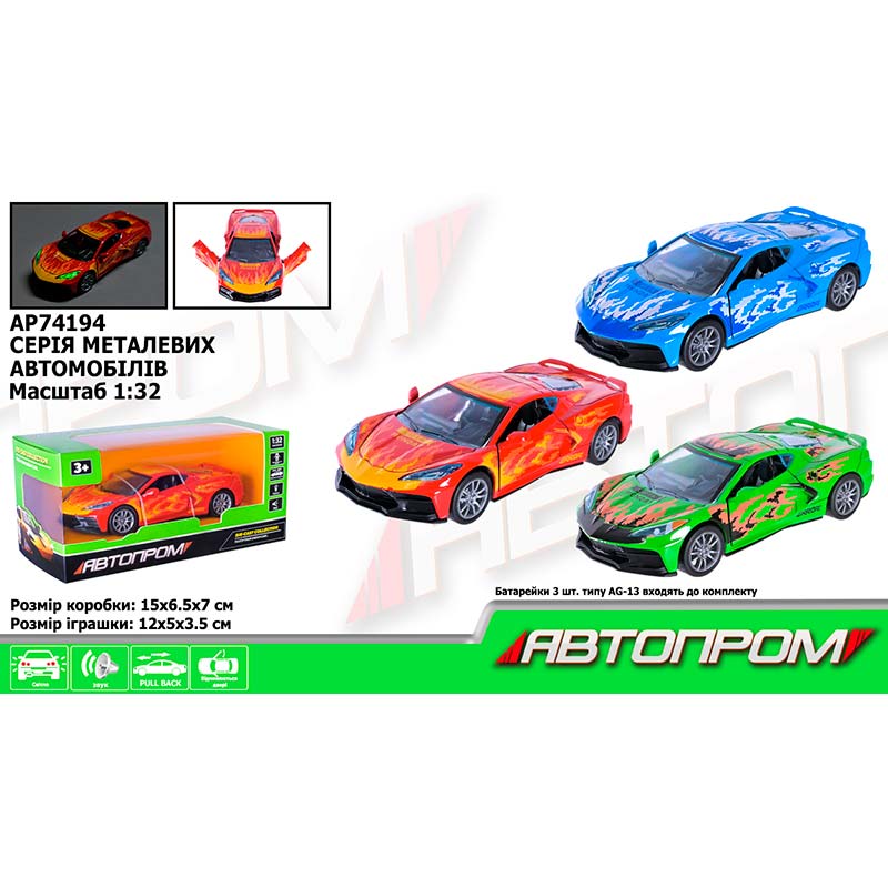 Машина мет. АВТОПРОМ 1:32 з відчиняються дверима – високоякісна металевий модель автомобіля в масштабі 1:32, що ідеально підходить для колекціонування та гри. Модель оснащена функцією відкривання дверей, що додає ще більше реалістичності та дозволяє насолоджуватися деталями конструкції.