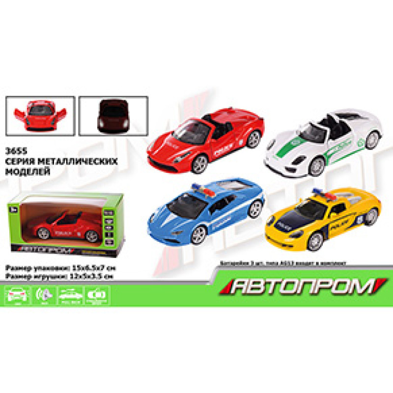 Машина метал 3655 "АВТОПРОМ", 1:32-36, 4 види, батар., світло, відкр.двері, в кор. 15*6,7*7см