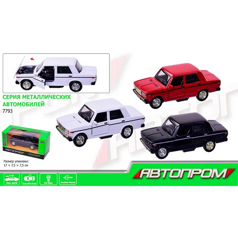 Машина метал 7793 (96шт/2) "АВТОПРОМ" 1:32-36 ВАЗ 2106 3 кольори батарея 7793