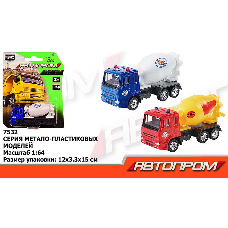 Машина метал "АВТОПРОМ" 1:64 2 кольори-мікс в ящику на планшетці 12*15см 7532