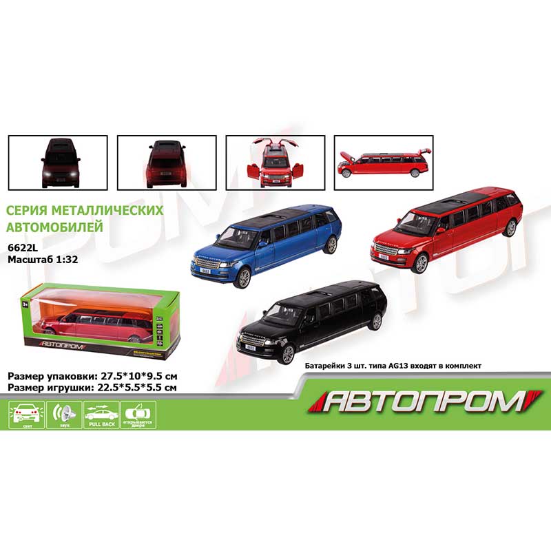 Машина метал "АВТОПРОМ" Land Rover 3 кольори батар світло звук відкр.д 6622L