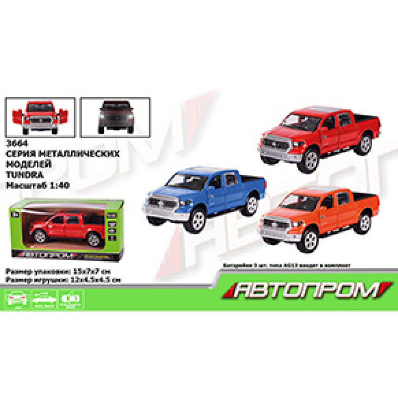 Іграшка машина метал 3664 (96шт/2) "АВТОПРОМ", 1:32-36,3 кольори, батар., Світло, відкр.двері, в кор. 15*6,7*7см