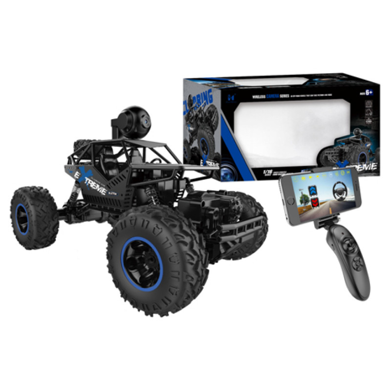 Машина на радіокеруванні з web-камерою - цей продукт використовує технологію дистанційного керування 2.4G. Високі показники по бездоріжжю, незалежно від місця, будь то пісок, бруд, камінь, порізані гірські дороги. Моделювання управління структурою, вперед і назад, поверніть ліворуч і праворуч. Чотиристоронній альпіністський автомобіль з WiFi-камерою, завантажуваний додаток, а потім керування автомобілем за допомогою мобільного телефону, відео та фото в реальному часі.