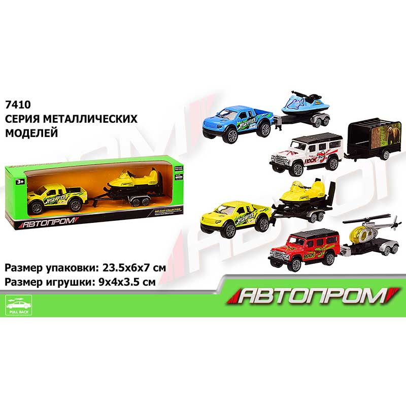 Машина з причепом метал "АВТОПРОМ" 1:50 4 види в коробці 235*6*7см 7410