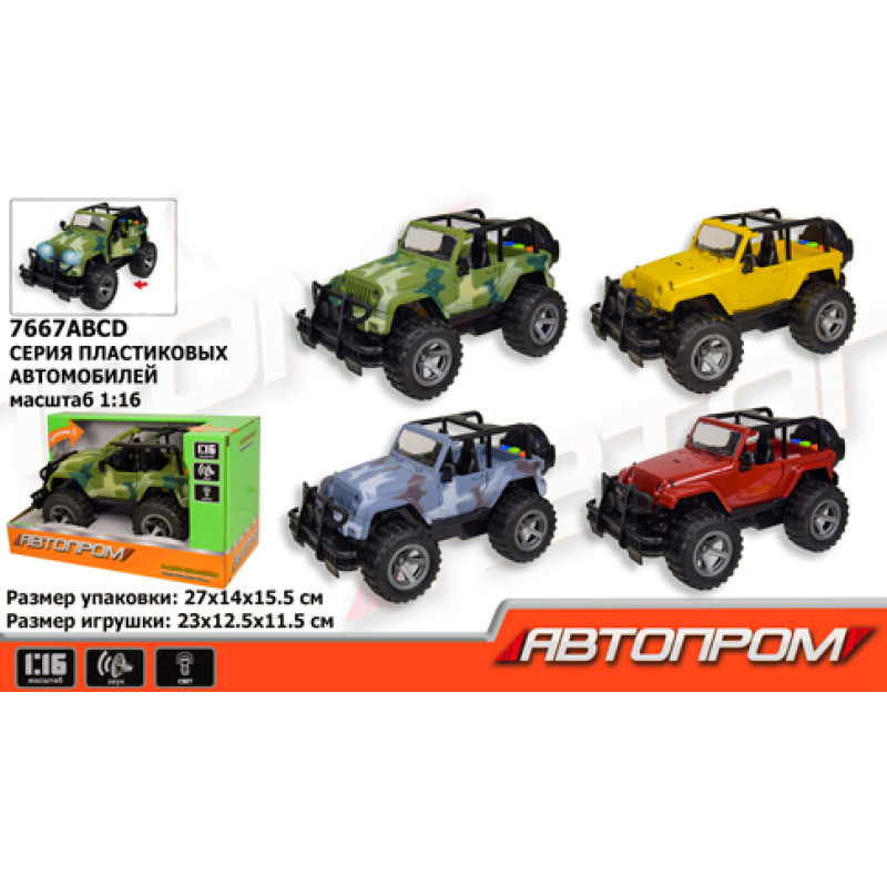 Іграшка машина батар. 7667ABCD (30шт) "АВТОПРОМ", 1:16,4 кольори, світло, звук, в коробці 27*14*15,5 см
