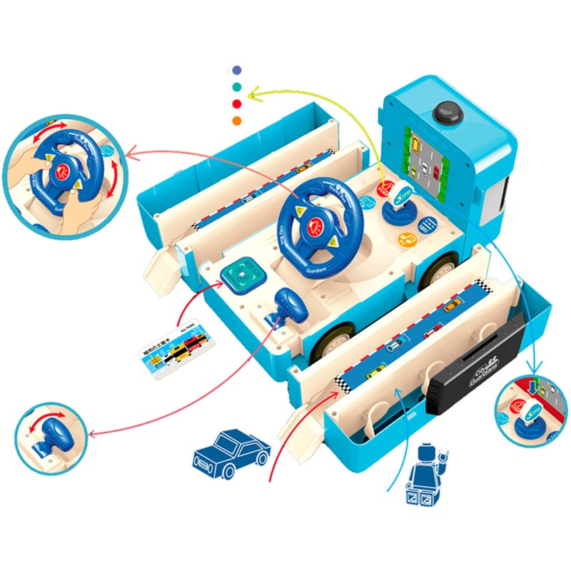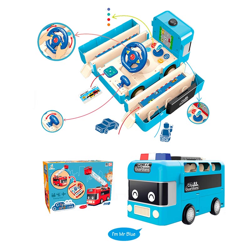 Яскрава і динамічна іграшка, яка об'єднує у собі транспорт і інтерактивний майданчик для гри. Один рух — і звичайний автобус миттєво розкривається в просторий автопарк з парковками, рампами та місцями для інших машинок. Ідеально підходить для веселих сюжетно?рольових ігор та колективних пригод.