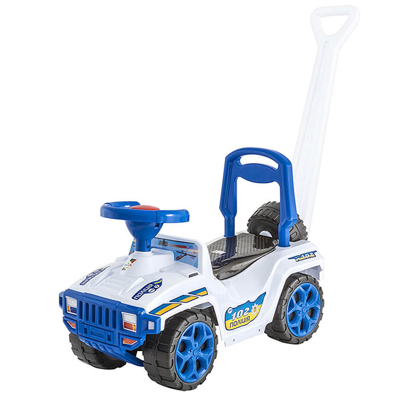 Машинка обладнана універсальною батьківською ручкою, яка дасть можливість контролювати переміщення дитини на машинці.