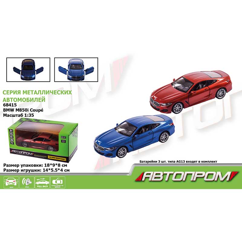 Машинка металева "АВТОПРОМ" 2 кольори BMW M850i Coup? батар світло звук 68415
