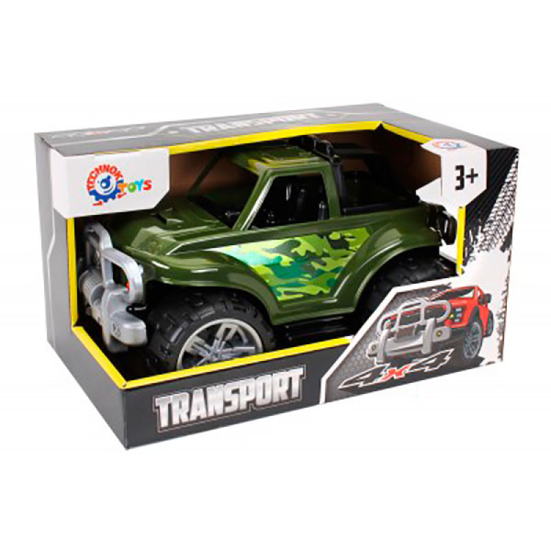 Іграшковий спортивний позашляховик з відкритим кузовом та масивними бамперами-«кенгурятниками». На машині великі колеса з яскравим протектором, що легко долають різні перешкоди. У салоні авто можна розмістити невеликі іграшки та взяти їх з собою у подорож. Цікавий динамічний дизайн позашляховика неодмінно приверне увагу дітвори до іграшки. Кольорова гама та яскраві наліпки додають грі особливого драйву – так діти уявляють себе супер героями.