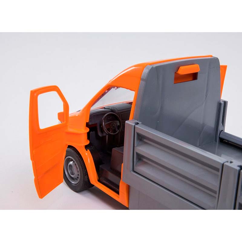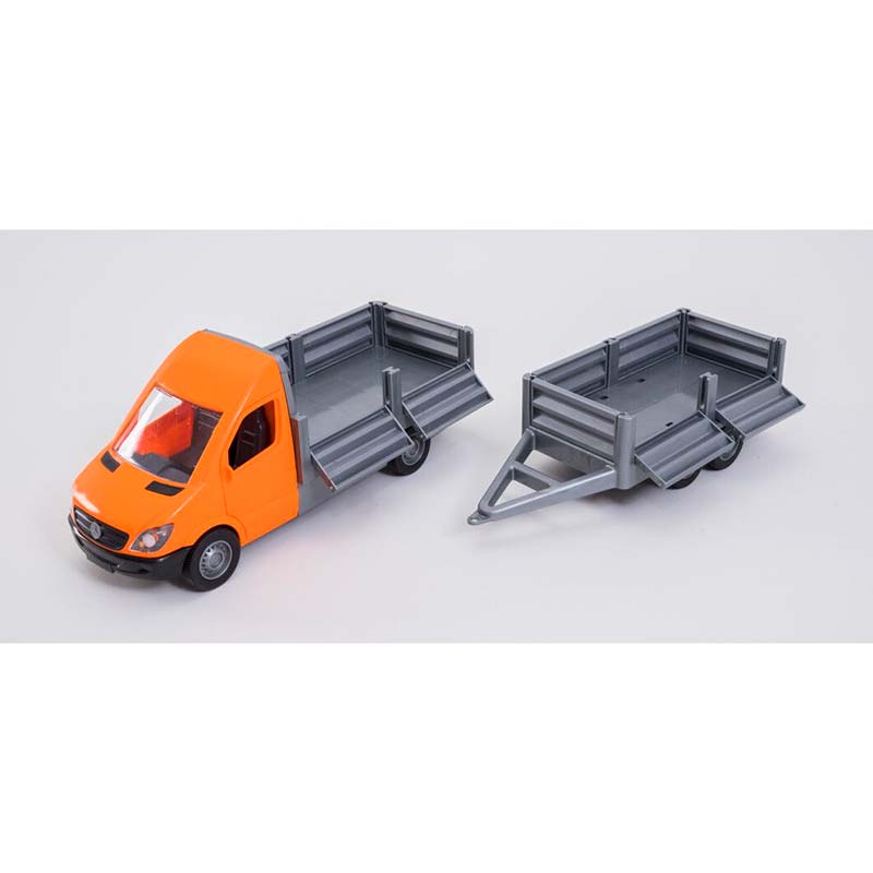 Елегантний мініатюрний Sprinter у поєднанні з яскравим помаранчевим причепом створює привабливий образ для гри та експозиції. Динамічний дизайн передає характер справжнього вантажного автомобіля, привертаючи увагу дітей і колекціонерів.