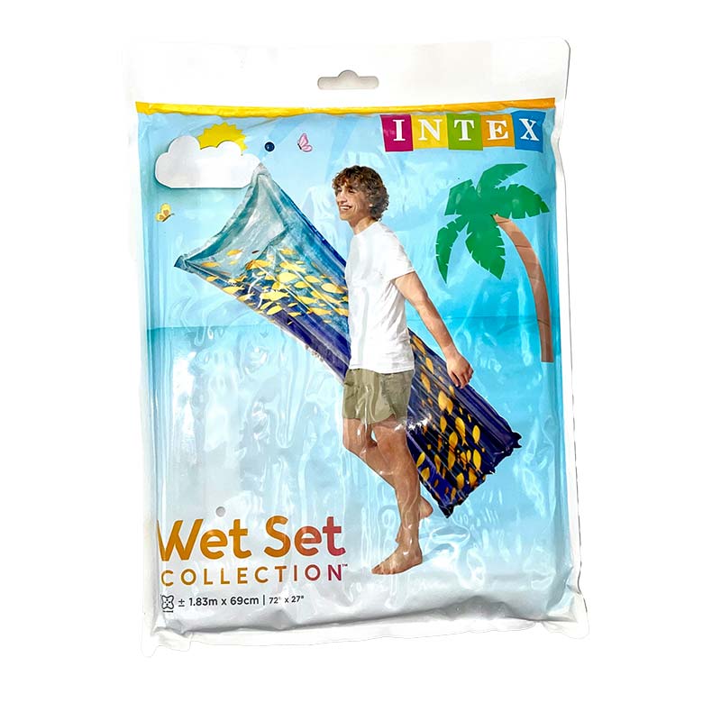 Матрац виготовлений із прозорого міцного вінілу і доступний у трьох соковитих райдужних кольорах, що додають гарного настрою та виглядають привабливо на сонці. Конструкція має дві повітряні камери для кращої стійкості на воді.