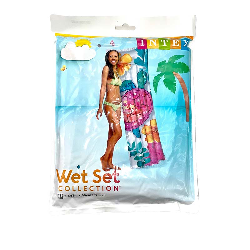 Матрац виготовлений із прозорого міцного вінілу і доступний у трьох соковитих райдужних кольорах, що додають гарного настрою та виглядають привабливо на сонці. Конструкція має дві повітряні камери для кращої стійкості на воді.