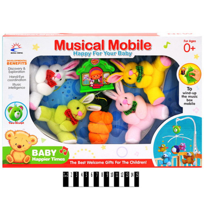 Мобіль музичний на ліжко з плюшевими зайчиками