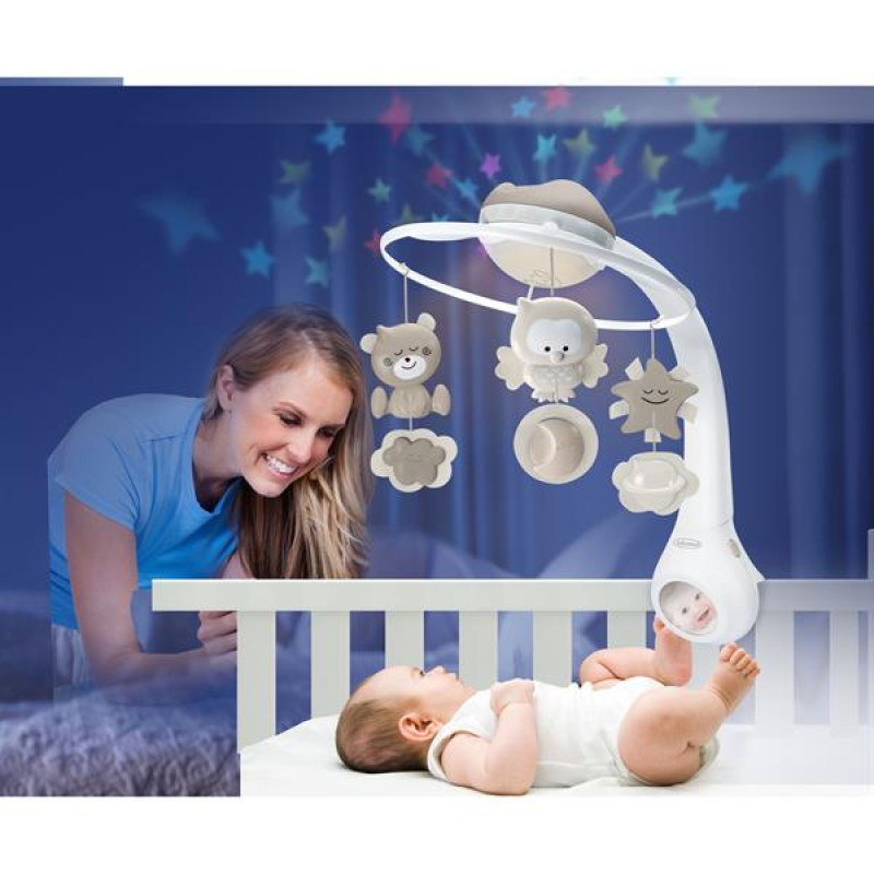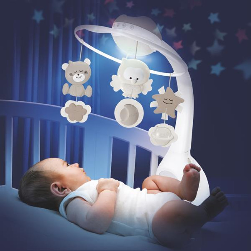 Мобіль музичний з проектором 3 в 1 INFANTINO - це мобіль, нічник на ліжечко та настільний нічник. Для новонароджених дітей потрібно прикрутити до ліжечка мобіль. Красиві мелодії і іграшки, що обертаються, спокійного сірого кольору будуть привертати увагу малюка і заспокоювати його.Принцип дії автомобіля - електронний. Також увечері можна ввімкнути підсвічування або проектор. Мобіль має 6 різних мелодій та 4 варіанти звуків природи, які заспокоюють дітей. Також можна повісити на ліжечко окремо нічник-проектор. Мелодії та заспокійливе світло допоможуть заснути старшому малюку. Коли дитина підросте, то ви зможете користуватися нічником просто як настільною нічною лампою.Мобіль має режими перед сном та для пробудження, які відрізняються тривалістю мелодій та часу включеного підсвічування. Є автоматичне вимкнення через 20 хвилин.Для роботи мобіля-нічника необхідні 3 батареї ААА (не в комплекті), які повинні прослужити 25 днів (при включенні 2 рази на день).