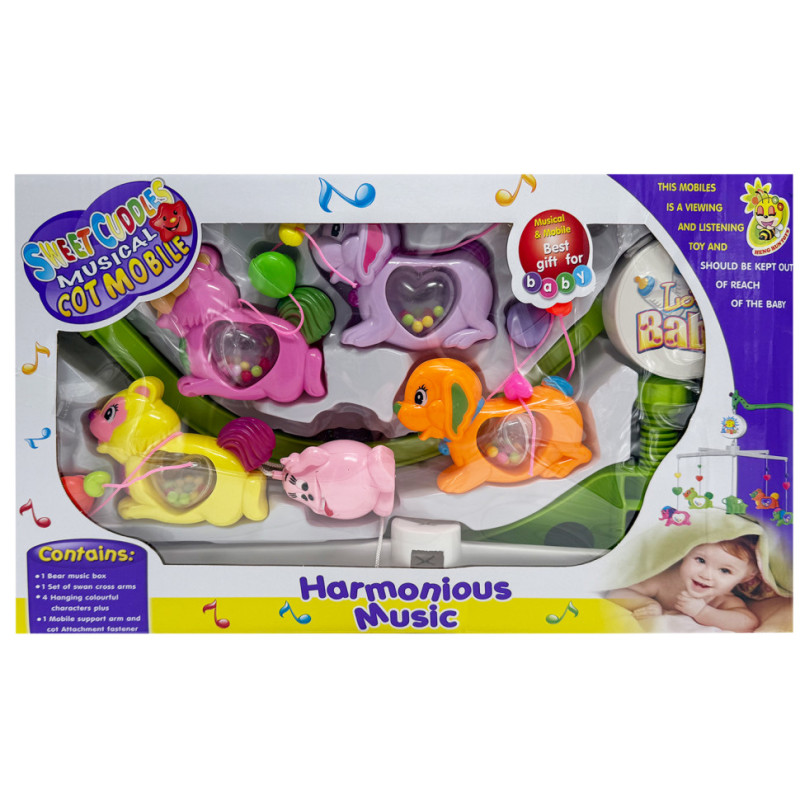 Розвиваючий вплив: Плавне обертання іграшок під музику розвиває зорову фіксацію та слухове сприйняття немовляти.