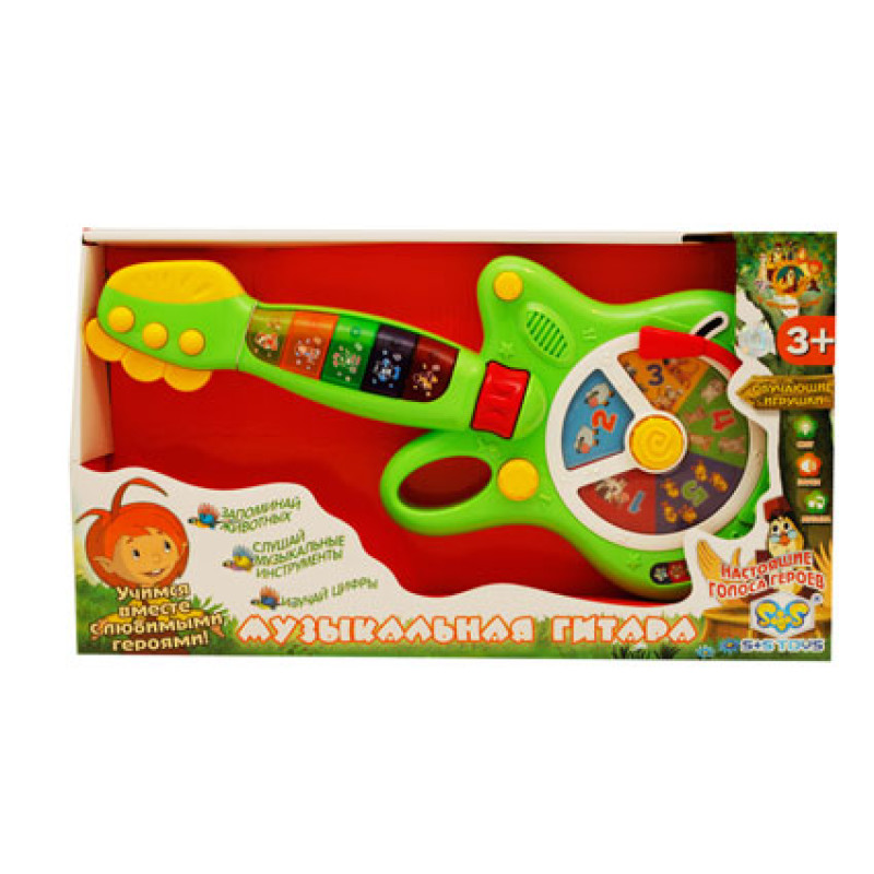 Музична, розвивальна гітара "У тітоньки Сови" працює від батарейок. Іграшка з підсвічуванням, має 3 режими навчання: