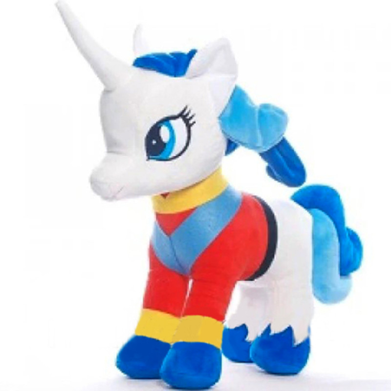 Єдиноріг Армор блакитного кольору з синіми копитами, одягнений у святкове вбрання - захопить Вашу дитину в світ фантазій, допоможе малюкові розвинути моторику і уяву. Іграшка дуже легка, ніжна, приємна на дотик, не деформується і зберігає свій зовнішній вигляд при машинному пранні.