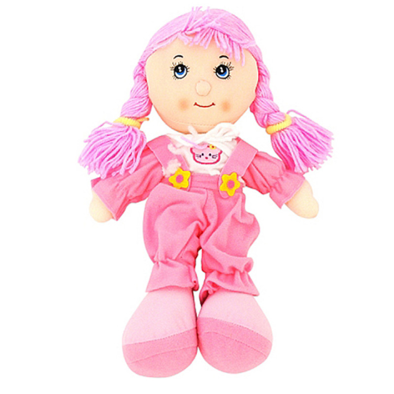 Рожева музична лялька в чарівному комбінезоні зі смішними кісками - захопить Вашу дитину в світ фантазій, допоможе малюкові розвинути моторику і уяву.