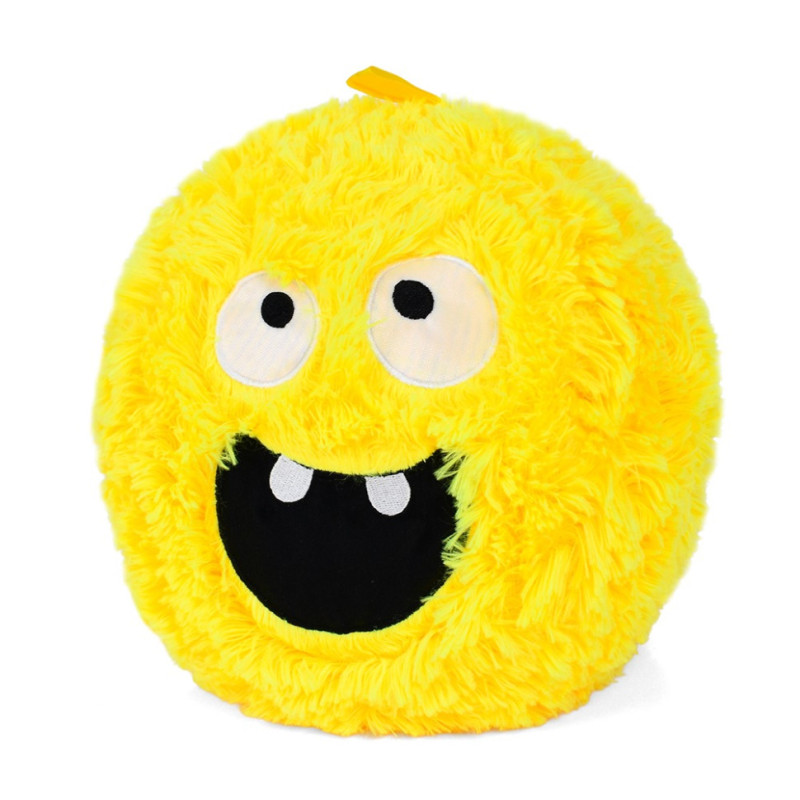 Це м'яка плюшева іграшка у вигляді яркого пухнастого монстрика із кумедним виразом обличчя. У неї круглі очі з маленькими зіницями та великий чорний рот. Зверху – петелька для підвішування.