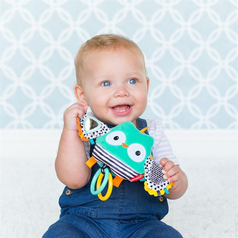 Чарівна м'яка іграшка підвісна Infantino Сова стане улюбленицею вашого малюка. Виріб підходить для гри з перших днів життя.Іграшка виконана з якісних, приємних на дотик матеріалів. Завдяки кріпленню виріб можна брати з собою на прогулянки та поїздки.При натисканні іграшка вібруватиме викликаючи у дитини позитивні емоції. Багато елементів надовго захоплять малюка. Знизу є два прорізувачі, які позбавлять дискомфорту в період появи перших зубів.Бренд Infantino завжди намагається створювати максимально привабливу та корисну продукцію. Завдяки м'якій іграшці Сова з вібрацією дитина навчиться фокусувати погляд на предметах, розвиватиме дрібну моторику рук, пізнаватиме світ через тактильні відчуття.Іграшка рекомендована для дітей від народження до 6 місяців.Для гри батарейки не потрібні.