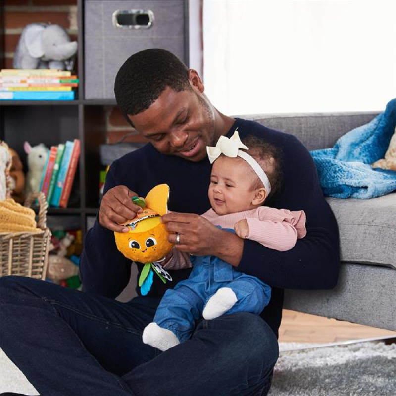 М'яка іграшка-підвіска Lamaze Апельсинка з прорізувачем має кілька фактурних поверхонь і чудово підходить для тактильного дослідження. Відокремте шкірку і знайдіть маленьку мушку. Пограйте з прихованим дзеркальцем. Коли так багато всього, що можна побачити, почути і торкнутися, малюкові ніколи не буде нудно!Іграшка на коляску і ліжечко має контрастні візерунки і кольори, приємно звучить при струшуванні, щоб розважити дитину і одночасно стимулювати почуття.Ця іграшка для новонароджених включає в себе гризунок у вигляді жука сонечка для жування, який заспокоює ясна дитини.Універсальна іграшка-підвіска має кільце, яке можна прикріпити до будь-якої дитячої коляски або ліжечка, а також до автокрісла, манежу, дуги розвивального килимка.М'яка іграшка-підвіска Lamaze Апельсинка створена фахівцями з дитячого розвитку через сенсорні ігри. Іграшка на коляску і ліжечко сподобається хлопчикам і дівчаткам із народження, від 0 місяців. Батарейки не потрібні.Із Lamaze батьки та діти стають ближчеЗ іграшками для малюків Lamaze можна використовувати програму Lamaze Play (AppStore та Google Play). Вона дозволяє ознайомитися з особливостями іграшок і знайти корисні способи грати, які зближують дітей і батьків, допомагають малюкам розвивати важливі для життя навички.Як це зробити?1. Знайдіть кольоровий ярлик Lamaze з куточками, пришитий до іграшки.2. Направте камеру пристрою на зображення на ярлику так, щоб воно вмістилося в рамку.3. Щоб дізнатися більше про іграшку, натисніть на кружки зі значками на екрані.
