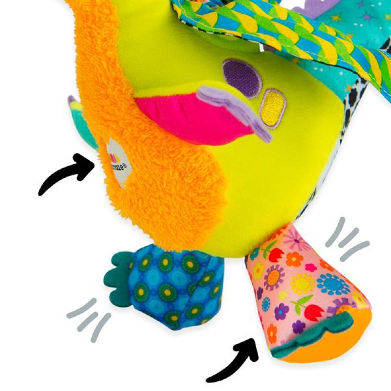 М'яка іграшка-підвіска Lamaze Дракончик стане улюбленим другом малюка з народження.Діткам сподобається дивитися, як казковий дракоша махає крилами! Для цього потягніть за біле кільце. Іграшковий дракончик зшитий із 6 різних матеріалів контрастних кольорів, які дитина може досліджувати, розвиваючи свої почуття.Іграшка на коляску і ліжечко не згубиться, оскільки має спеціальну зачіпку для кріплення до чого завгодно: дитячих колясок, ліжечок, сумок для сповивання, автокрісел.М'яка іграшка-підвіска Дракончик від Lamaze безпечна і зроблена якісно для хлопчиків і дівчаток від 0 місяців. Батарейки не потрібні.Із Lamaze батьки та діти стають ближчеЗ іграшками для малюків Lamaze можна використовувати програму Lamaze Play (AppStore та Google Play). Вона дозволяє ознайомитися з особливостями іграшок і знайти корисні способи грати, які зближують дітей і батьків, допомагають малюкам розвивати важливі для життя навички.Як це зробити?1. Знайдіть кольоровий ярлик Lamaze з куточками, пришитий до іграшки.2. Направте камеру пристрою на зображення на ярлику так, щоб воно вмістилося в рамку.3. Щоб дізнатися більше про іграшку, натисніть на кружки зі значками на екрані.