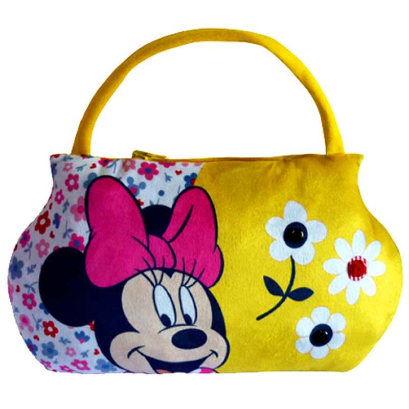 Подушка у вигляді сумочки жовтого кольору з принтом Мікікі - захопить Вашу дитину в світ фантазій, допоможе малюкові розвинути моторику і уяву.