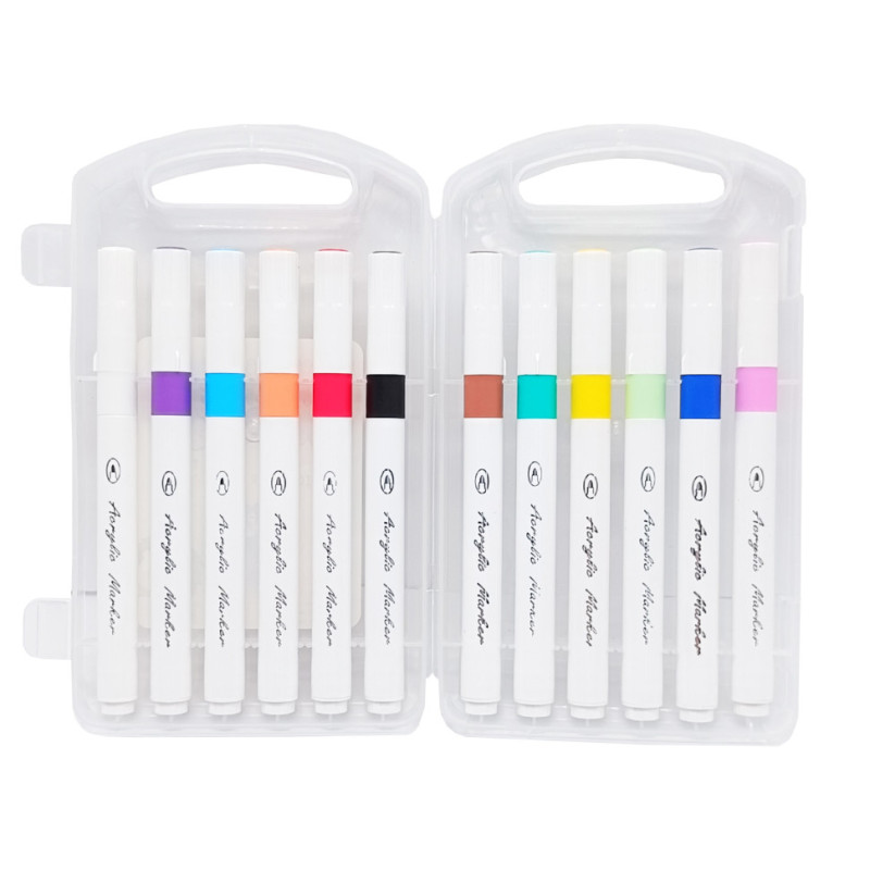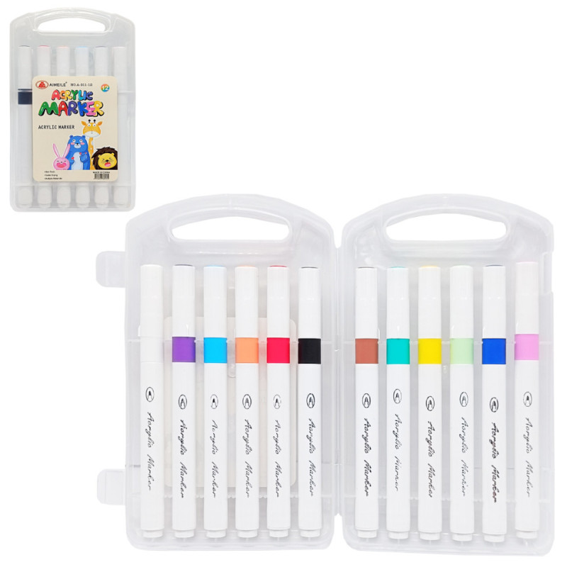 Набір акрилових маркерів A-911-12 у пластиковому боксі 12 кольорів