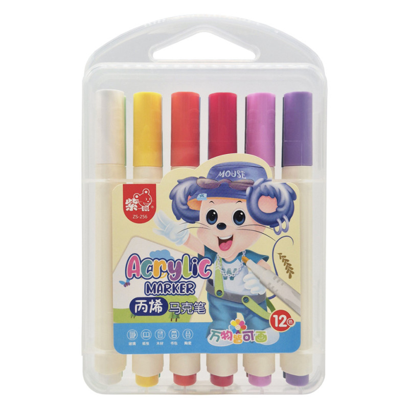 Набір акрилових маркерів "Mouse" ZS-256-12 тригранні 12 шт