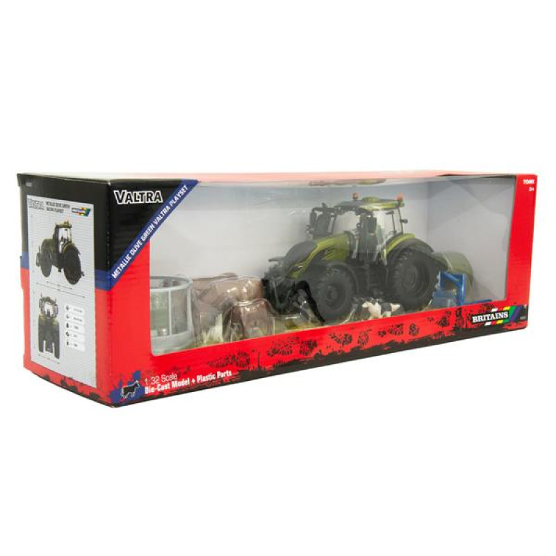 Представляємо набір Britains модель трактора Valtra з аксесуарами та фігурками в масштабі 1:32. У цей ігровий набір входить повністю деталізований трактор Valtra з фігурками водія, собаки, двох корів і теляти, тракторними вилами, двома тюками та годівницею, які подарує вам цікаве проведення часу.Складові набору сумісні з усіма копіями сільськогосподарської техніки, фігурками та аксесуарами в масштабі 1:32. Підходить для ігор у приміщенні та на вулиці, для колекціонерів і дітей від 3 років.