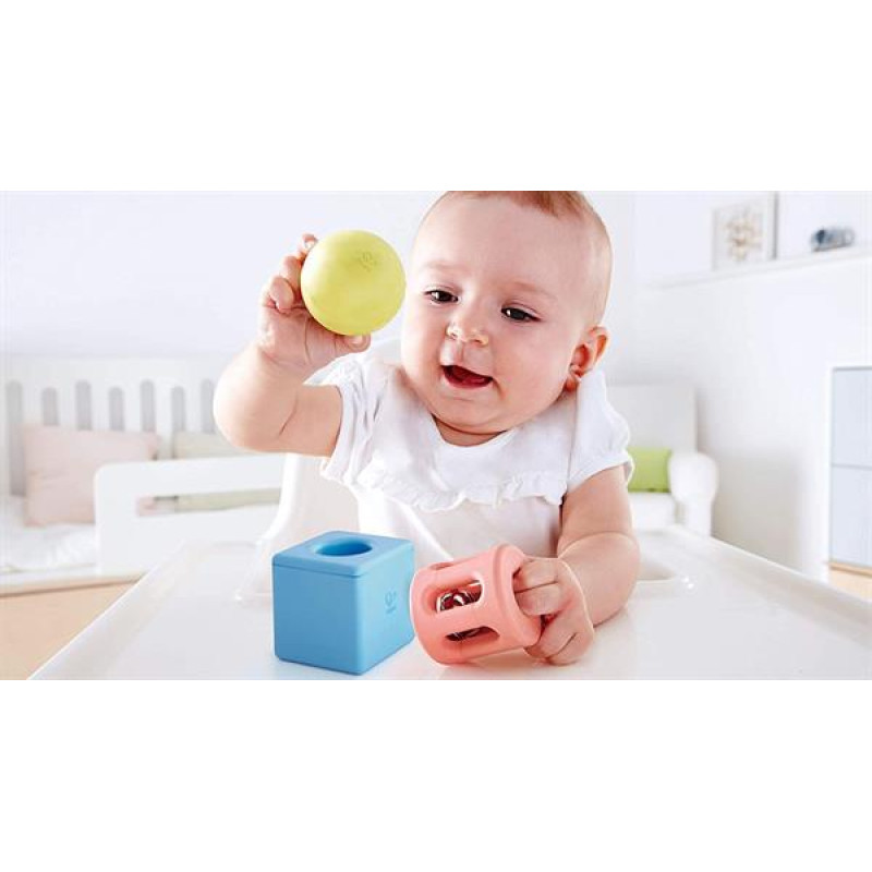 Набір брязкалець Hape Геометричні фігури 3 в 1 сподобається малюкам від народження. Іграшки будуть цікаві впродовж першого року життя.Іграшки виготовлені з матеріалу на основі японського рису. Вони зручні для дитячих рук і виконані у м'якій кольоровій гамі. До набору входить три фігурки. Кульку можна котити, циліндр зручно трясти, дослухаючись до звуку дзвіночка, а в куб спробуйте зазирнути. У середині нього #8211; кольорова лінза.Набір брязкалець Hape Геометричні фігури 3 в 1 (E0454) відповідає міжнародним стандартам якості EN 71 і ASTM F963.