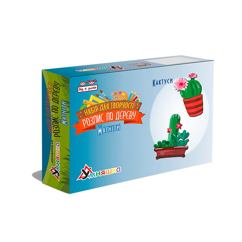 Яскравий та захопливий набір, який допомагає дітям розкрити творчий потенціал через розпис дерев'яних магнітів у формі кактусів. Простий у використанні та ідеальний для сімейної творчості або невеликого хобі вдома.