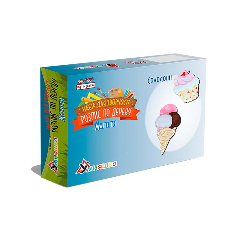Яскравий та веселий комплект для творчого розвитку: діти можуть розфарбовувати дерев'яні заготовки у вигляді улюблених солодощів і створювати оригінальні магніти. Процес малювання допомагає розвинути уяву, координацію рук та почуття кольору, а також дарує радість від створення власних виробів.