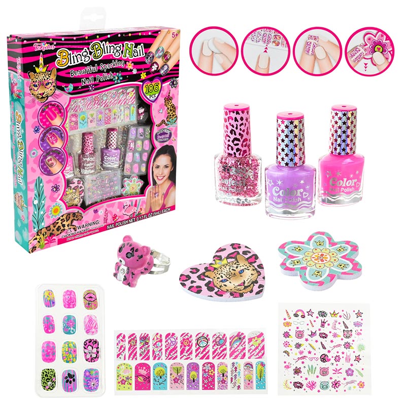 Набір для дитячого манікюру лак на водній основі наліпки накладні нігті N02LP