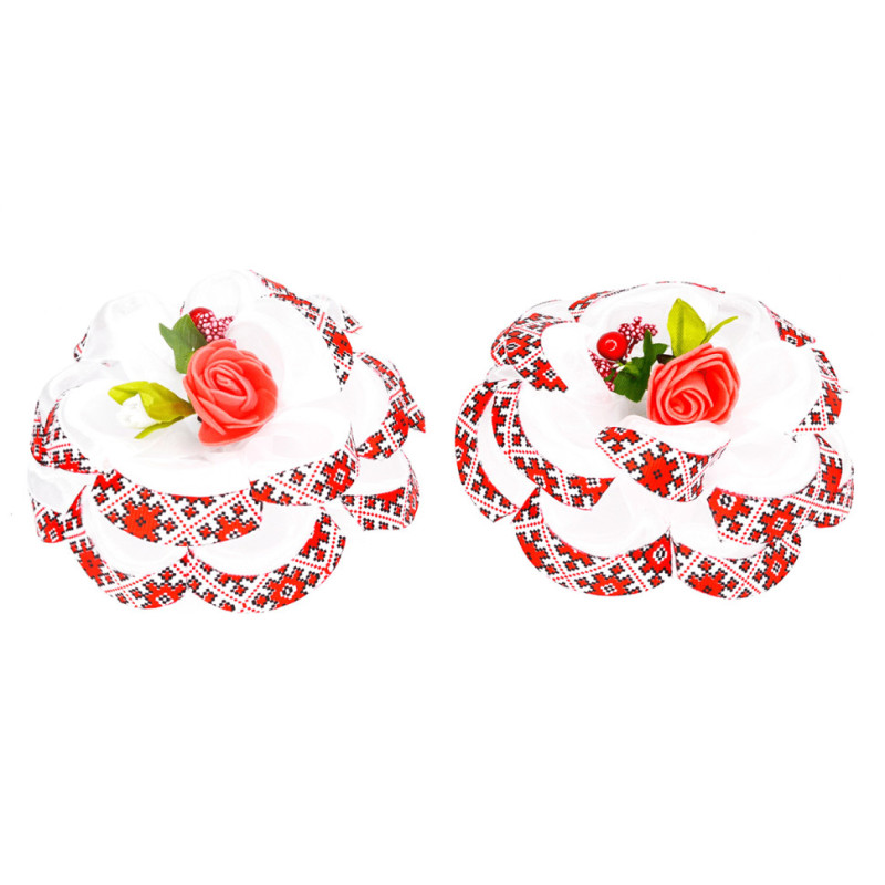 Цей набір з двох бантів в українському стилі випромінює ніжність та елегантність. Кожен бант виготовлений з високоякісних матеріалів, що забезпечує м'якість та стійкість кольору. Головною родзинкою дизайну є вишуканий білий колір, який символізує чистоту та свіжість, ідеально підходить для святкових та повсякденних заходів.