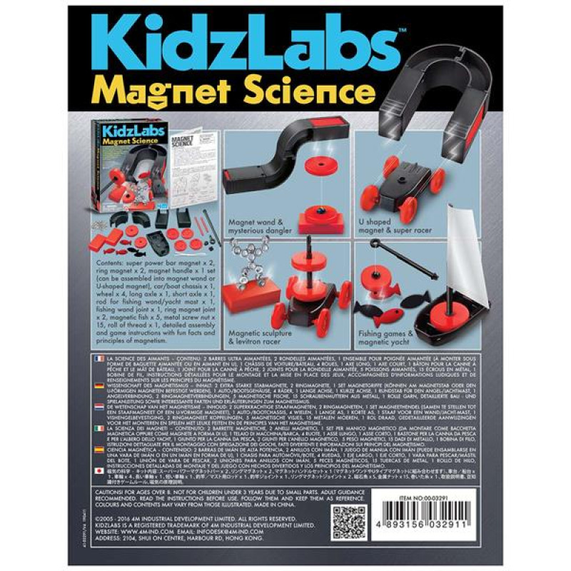 Набір для досліджень від 4М допоможе зібрати безліч дивовижних речей із магнітів: машинку на магнітній тязі, яхту і навіть скульптури.Насамперед перевірте, які об'єкти навколишнього світу реагують на магніт, а які #8211; ні. Наберіть у невелику ємність воду і помістіть у неї магнітних рибок. За допомогою вудочки з магнітом зловіть якомога більше рибок за один раз. Влаштуйте змагання! Перевірте, як швидко буде їздити машинка на магнітній тязі, і відправте у круїз яхту по хвилях в раковині. На вас чекають досліди з левітацією та створенням власних магнітних скульптур.Усього в наборі для досліджень викладені 10 цікавих дослідів та ігор із магнітами. Але ви можете вигадати ще безліч власних! Набір містить усі необхідні деталі та схеми, перелік цікавих фактів про магніти та їх властивості. Наприклад, що наша Земля #8211; великий магніт. Стрілка компаса завжди вказує на Північний полюс, який розташований у Північному Льодовитому океані. Дослідники виявили, що компаси там не працюють: стрілка обертається без зупинки.Набір із серії KidzLabs у легкій ігровій формі знайомить дітей із базовими поняттями фізики, розвиває мислення, допитливість, інтелект. Він буде цікавий дітям молодшого шкільного віку від 8 років.У наборі:Набір тримачів для магніту #8211; 1 шт.Круглий магніт #8211; 2 шт.Потужний магніт у пластиковій коробці #8211; 2 шт.Колесо #8211; 4 шт.Короткий стрижень #8211; 1 шт.Довгий стрижень #8211; 1 шт.Моток нитки #8211; 1 шт.Вудка #8211; 1 шт.Магнітна рибка #8211; 5 шт.Кріплення рибальської вудки #8211; 1 шт.Набір гайок #8211; 1 шт.Набір гвинтів #8211; 1 шт.Ходова частина човна/машинки #8211; 1 шт.Інструкція #8211; 1шт.