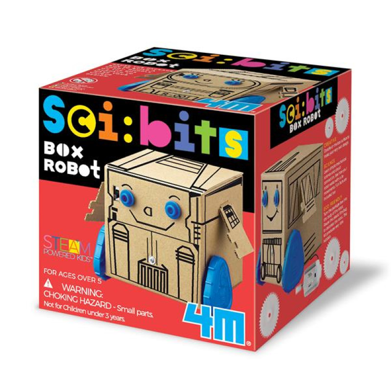 Науковий набір від 4M Коробковий робот дозволяє створити рухомого робота з картонної коробки за допомогою інструкції з малюнками всередині упаковки. Такий незвичайний набір сподобатися юним технікам від 5 років.Зберіть мотор за інструкцією з деталей у комплекті. Зробіть з упаковки цього набору корпус для робота. Розфарбуйте і декоруйте коробкового робота на свій смак.Як працює ця наукова іграшка? Кулачки робота перетворюють обертальний рух у зворотно-поступальний, завдяки чому робот може пересуватися.Науковий набір дає можливість дітям грати і дізнаватися нове. Використовуючи упаковку цього набору для створення корпусу робота, діти навчаться повторному використанню речей і дізнаються про основи екологічної етики. Збираючи мотор робота, вони на практиці зрозуміють деякі фізичні принципи. Таким чином у грі відбувається знайомство з основами робототехніки, екології, фізики, механіки. А декоруючи іграшкового робота, діти проявляють художні навички, творчі здібності, креативність.Набір серії Sci: Bits позитивно впливає на допитливість, винахідливість, розвиває мислення, інтелект, тренує навички конструювання, уяву, формує впевненість у своїх здібностях. Комплект підходить для занять удома, у молодшій школі, на розвивальних курсах за освітньою методикою STEAM.У комплекті: модуль двигуна, двигун із черв'ячною передачею і проводами, кришка двигуна, вісь із зубчатим колесом, 2 трубчасті конструкції, 2 кулачки, 2 клемні кришки, 2 ніжки, гвинти, кришка батарейного відсіку, інструкція з малюнками (надрукована на внутрішній поверхні упаковки ). Додатково потрібні (немає в комплекті): 1 х АА батарея, невелика хрестова викрутка, ножиці та маркер.