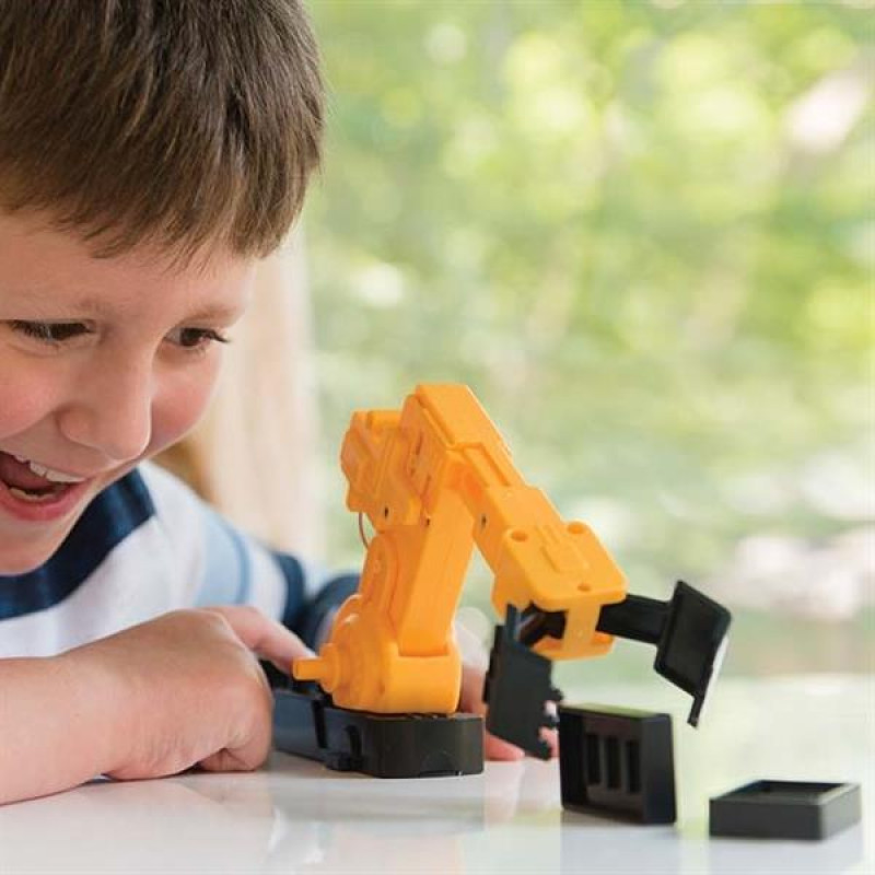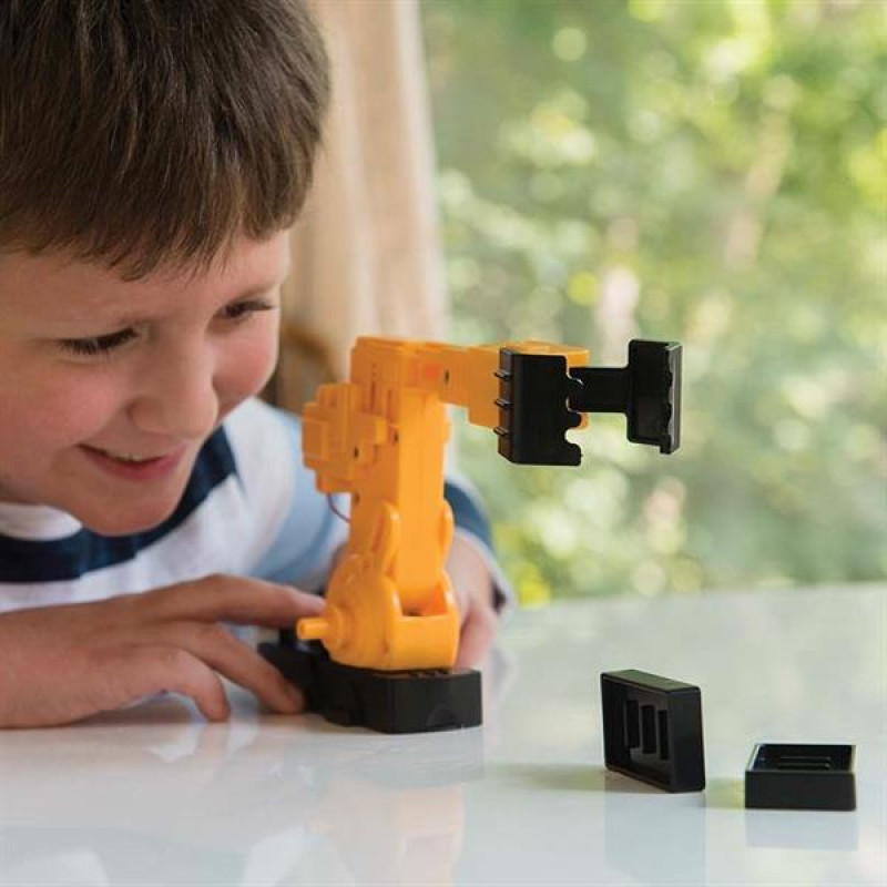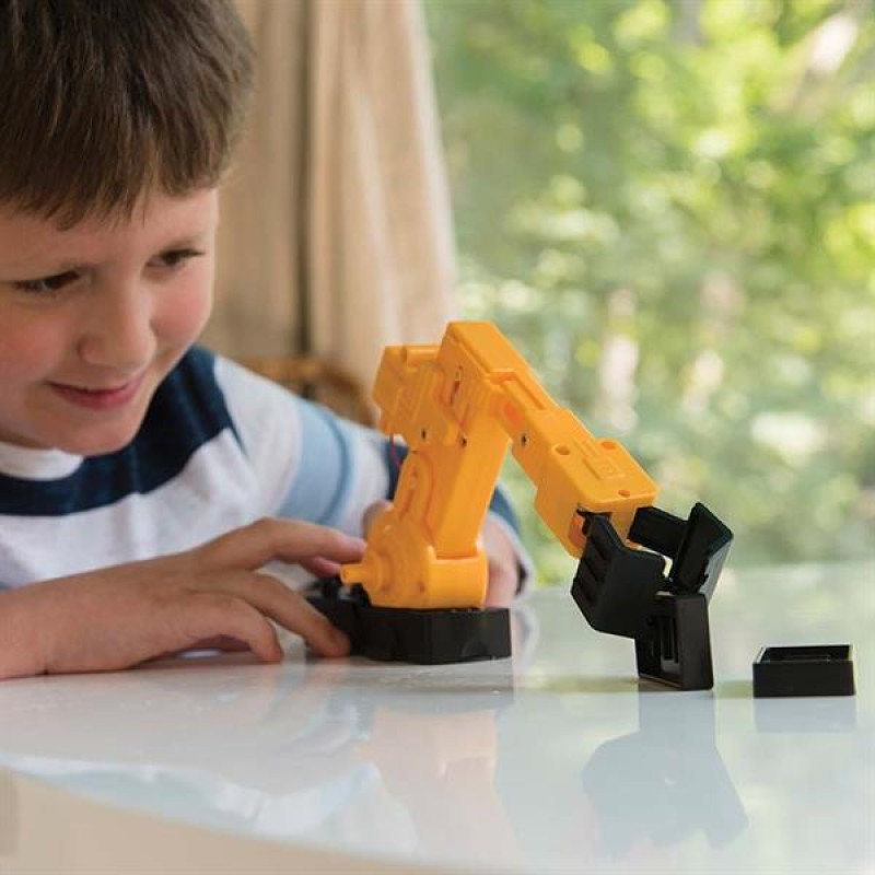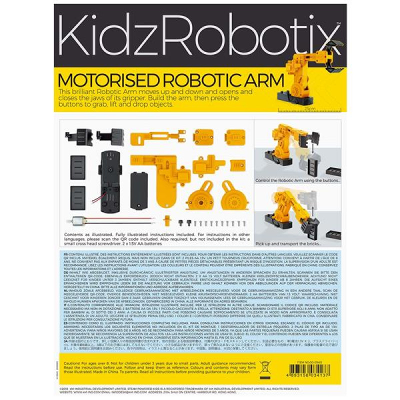 Зберіть моторизовану руку, щоб керувати нею, переміщаючи предмети! Науковий набір від 4М занурить вас у світ робототехніки. У ньому ви знайдете все необхідне для збирання роборуки, крім маленької хрестоподібної викрутки і двох батарейок AA.Коли ви зберете моторизовану руку за допомогою схеми в інструкції, настане час перших експериментів. Натисніть кнопку праворуч, щоб роборука рухалася вгору і вниз, потім натисніть кнопку зліва, і рука почне відкривати і закривати клішню. Зверніть увагу, що кнопки потрібно натискати по черзі.Влаштуйте грандіозне будівництво! Використовуйте робота-маніпулятора для гри в баштовий кран або екскаватор. Запрошуйте друзів і грайте разом.В інструкції ви знайдете пізнавальні факти, які ще більше зацікавлять робототехнікою. Наприклад, ви дізнаєтеся, що першу роботизовану руку створив американський винахідник Джордж Девол. У 1960-х роборуку використовували на автомобільному заводі, піднімаючи важкі металеві частини автомобілів. Сьогодні на підприємствах задіяні тисячі роботизованих рук, які переміщують об'єкти, виконують роботи з фарбування, зварювання та різання. Роборуку використовують також на Міжнародній космічній станції.Набір із серії KidzRobotix буде цікавий дітям від 8 років молодшої школи. Він розвиває винахідливість, інтелект, допитливість, мислення і навички конструювання. Може використовуватися для занять за методикою STEAM.У наборі:Корпус #8211; 1 шт.Основа #8211; 1 шт.Кріплення захоплення #8211; 1 шт.Права клішня #8211; 1 шт.Ліва клішня #8211; 1 шт.Нижня частина корпусу клішні #8211; 1 шт.Верхня частина корпусу клішні #8211; 1 шт.Двигун #8211; 1 шт.Цеглини #8211; 2 шт.Правий кулачок #8211; 1 шт.Лівий кулачок #8211; 1 шт.Кришка двигуна #8211; 1 шт.Кришка відсіку для батарейок #8211; 1 шт.Ручка #8211; 1 шт.Кришка захоплення #8211; 1 шт.Клемні кришки #8211; 2 шт.Гвинти #8211; 10 шт.