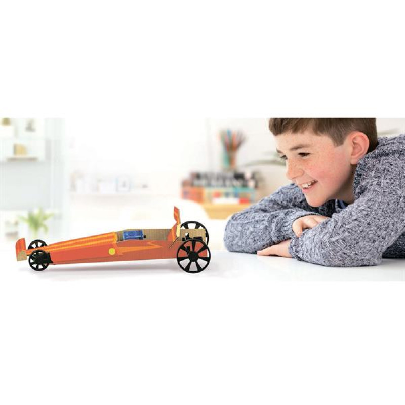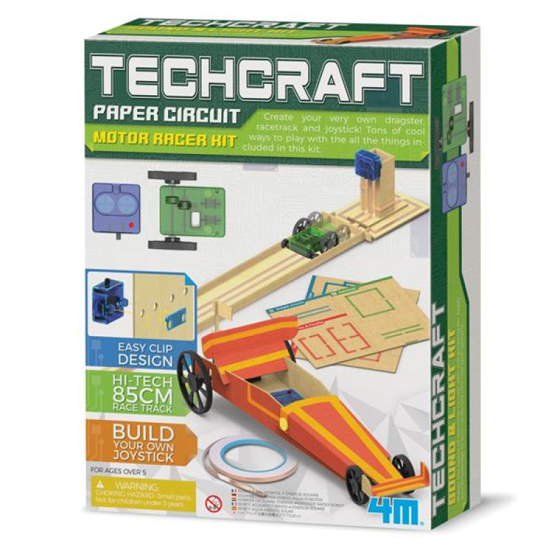 Створіть дві моделі гоночних автомобілів і трасу для них із науковим набором 4M Паперові схеми Гоночні машини. Вивчайте принципи фізики, весело граючи з картонними машинками і треком! Комплект оцінять хлопчики від 5 років.Набір від 4M Гоночні машини розвиває мислення, інтелект, допитливість, навички конструювання, винахідливості. Складання моделей із комплекту познайомить з основами фізики та електрики. Може зацікавити вивченням наук, технологій, інженерної справи. Підходить для курсів навчання STEM.У наборі для наукових досліджень серії Techncraft є всі необхідні деталі для занять, покрокова інструкція з малюнками і цікавими фактами про електрику. Складіть машинки за інструкцією і починайте безпечні дослідження електрики на реальних моделях.Принцип роботи. Батарея створює потенційну енергію, виробляючи більше електронів на одному кінці та менше електронів на іншому кінці (позитивний і негативний заряди). Коли два кінця замикаються в коло, негативні електрони перетікають до позитивно зарядженого кінця, де електронів менше. Так виникає електричний струм, який створює електричну енергію. Електричний струм потужніший, коли кількість електронів в одному місці більша, ніж в іншому.Комплектація: шаблони x 4, модуль батареї x 1, модуль двигуна x 1, маточина колеса x 1, вісь заднього колеса x 1, велике колесо x 2, маленьке колесо x 2, з`єднувальний елемент x 1, затиск x 3, тонка провідна стрічка x 1, товста провідна стрічка x 1, C-подібне кільце і штифти x 2, прозора стрічка x 1.Додатково потрібні: ножиці, маленька хрестова викрутка, 2 батарейки AG13/LR44 (не входять до комплекта).