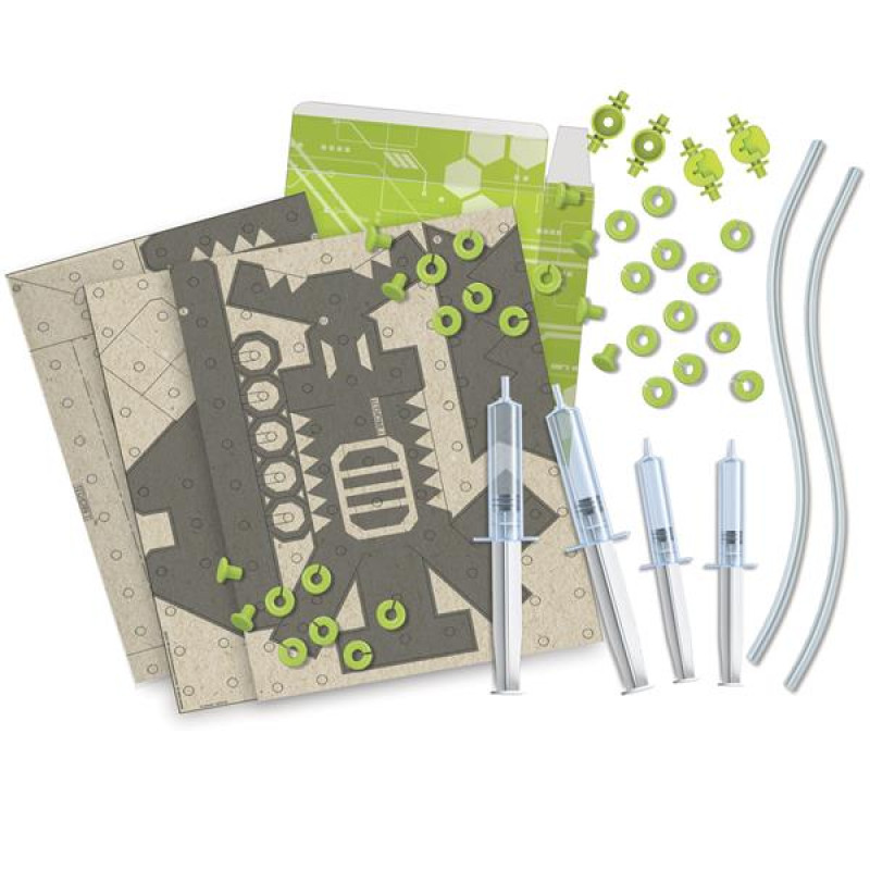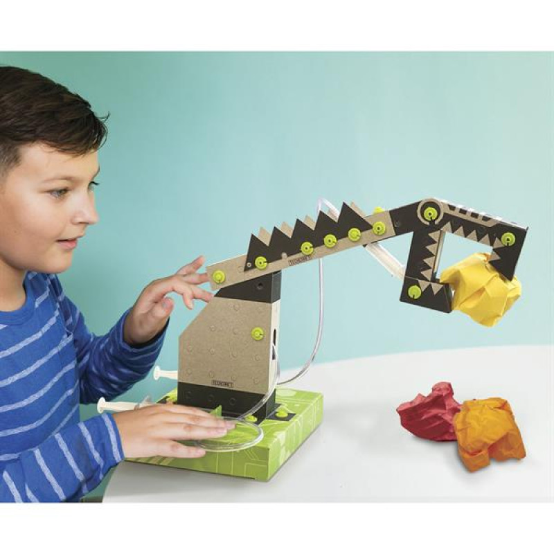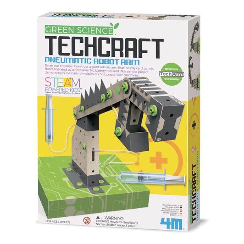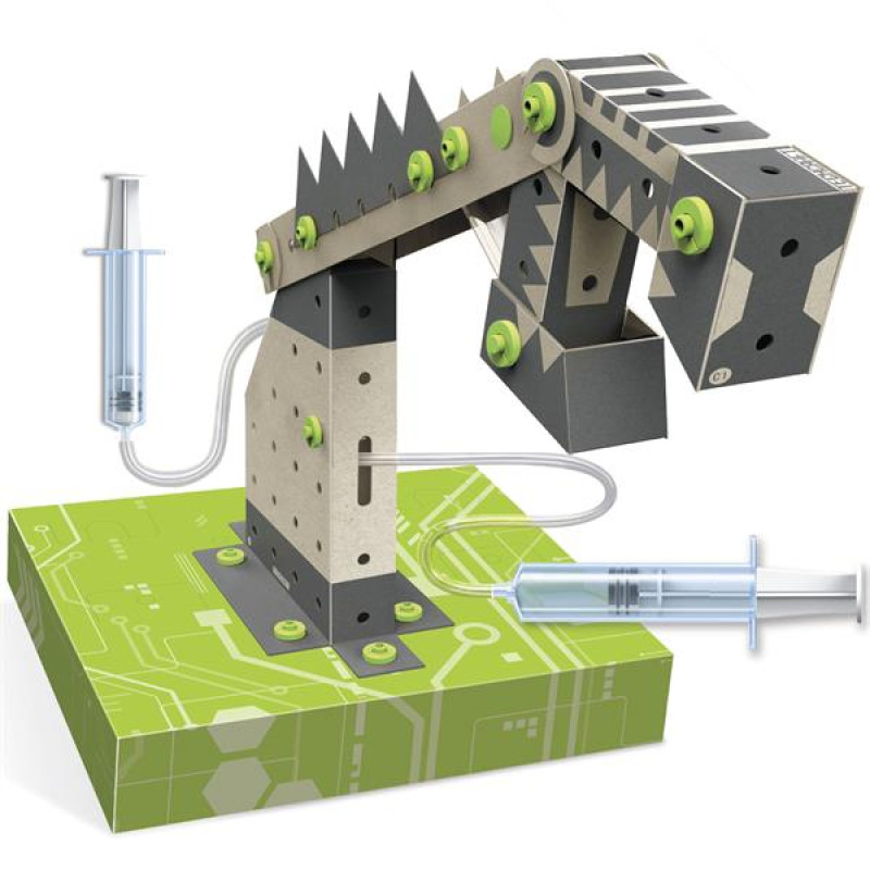 Збери пневматичну руку 4M #8211; науковий набір для дітей 5-7 років. Механізм іграшкового екскаватора оснащений рухомим ковшем із двох частин, яким можна керувати за допомогою двох шприців.Зберіть по інструкції зі схемами наукову іграшку і дізнайтеся про пневматику (розділ фізики), пневматичні механізми і пристрої на їх основі. Корпус моделі виготовляється з коробки набору. Тому проект вийде екологічним і діти дізнаються про вторинне використання предметів.Деталі в комплектіЧастина А: Підставка, Частина В: Рука, Частина C1-C3: Зажим, Частина D: Декор ласт, Частина Е: Декор очок і гайок, Частина F: Опора базової платформи, Частина G: Базова платформа, Частина Н: Великий шприц х 2, Частина 1: Маленький шприц х 2, Частина J: Плунжер х 2, Частина K: Тримач шприца х 2, Частина L: Трубка х 2, Частина М: Т-коннектор х 2 комплекти, Частина N: С-коннектор х 2 комплекту.Як це працюєУ пневматичному важелі, коли ви натискаєте на поршень, повітря в шприці стискається. Це збільшує тиск повітря в шприці. Тиск повітря на поршень в цьому шприці виштовхує поршень назовні. Витягування поршня знижує тиск повітря. Потім тиск повітря зовні другого шприца штовхає його поршень назад.Пневматика #8211; це використання стисненого повітря або інших газів для роботи машин. Більшості пневматичних машин необхідний потужний повітряний насос для підвищення тиску повітря, щоб повітря могло штовхати поршні всередину і з циліндрів для переміщення частин машин.Роботизовані маніпулятори, подібні до цієї пневматичної руки, працюють на заводах, збираючи і переміщаючи предмети або керуючи інструментами, такими як викрутки і зварювальні апарати.Науковий набір від 4М познайомить дітей із робототехнікою, фізикою, зеленою енергією. Складання механізмів своїми руками розвиває навички винахідливості та конструювання, тренує логічне мислення і спритність пальців. Розвивальний набір для наукових досліджень 4M може використовуватися на STEAM-заняттях. Батарейки не потрібні.