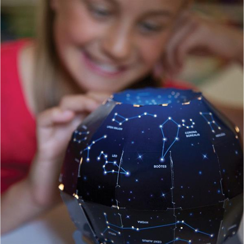 Влаштуйте вдома власний планетарій із набором для досліджень від 4М! На стінах і стелі вашої спальні з’являться сузір'я південної і північної півкуль. Запрошуйте друзів, разом розглядайте і запам'ятовуйте обриси, розташування і назву кожного зоряного скупчення. Ви дізнаєтеся багато цікавого про астрономію!У наборі є дві заготівки у вигляді півкуль. Додатково знадобиться тонкий гострий олівець або цвях. За його допомогою зробіть дірочки в місцях зірок, зазначених на заготівках. Зберіть півкулі зоряного неба як зазначено в інструкції. Для роботи лампи підготуйте 4 батарейки AA.Усі зірки, що ми бачимо на нічному небі, розташовані в галактиці, яка називається Чумацький шлях. Там є близько 100 мільярдів зірок. В ясну ніч можна побачити лише кілька тисяч із них голим оком.Набір із серії KidzLabs буде цікавий дітям молодшого шкільного віку від 8 років. Розглядаючи сузір'я за допомогою проектора, діти познайомляться з астрономією. Такий набір розвиває мислення, уяву, допитливість, кругозір. Набір для досліджень підходить для навчання в рамках реджио-педагогіки.У наборі:Купол нічного неба південної півкулі #8211; 1 шт.Купол нічного неба північної півкулі #8211; 1 шт.Лампа #8211; 1 шт.Опори для купола #8211; 4 шт.Клейка стрічка #8211; 1 шт.Інструкція #8211; 1 шт.