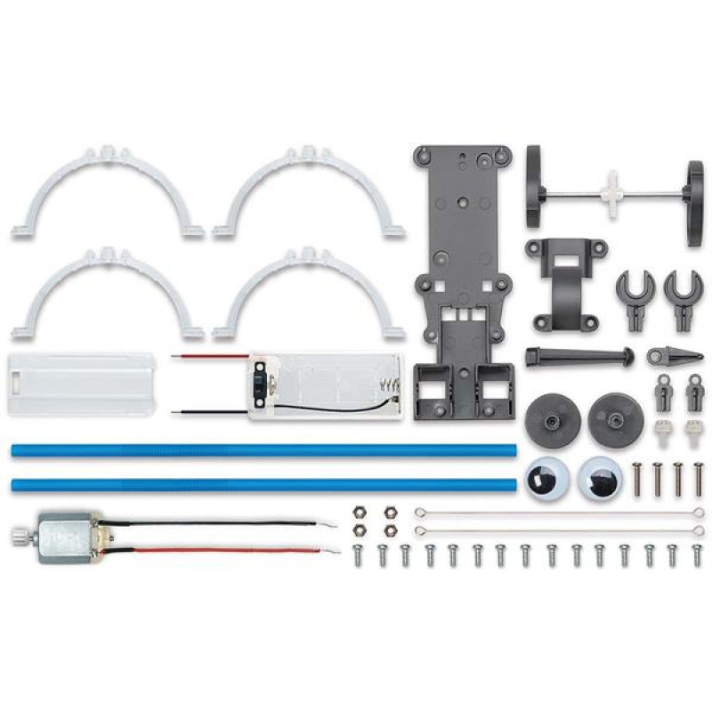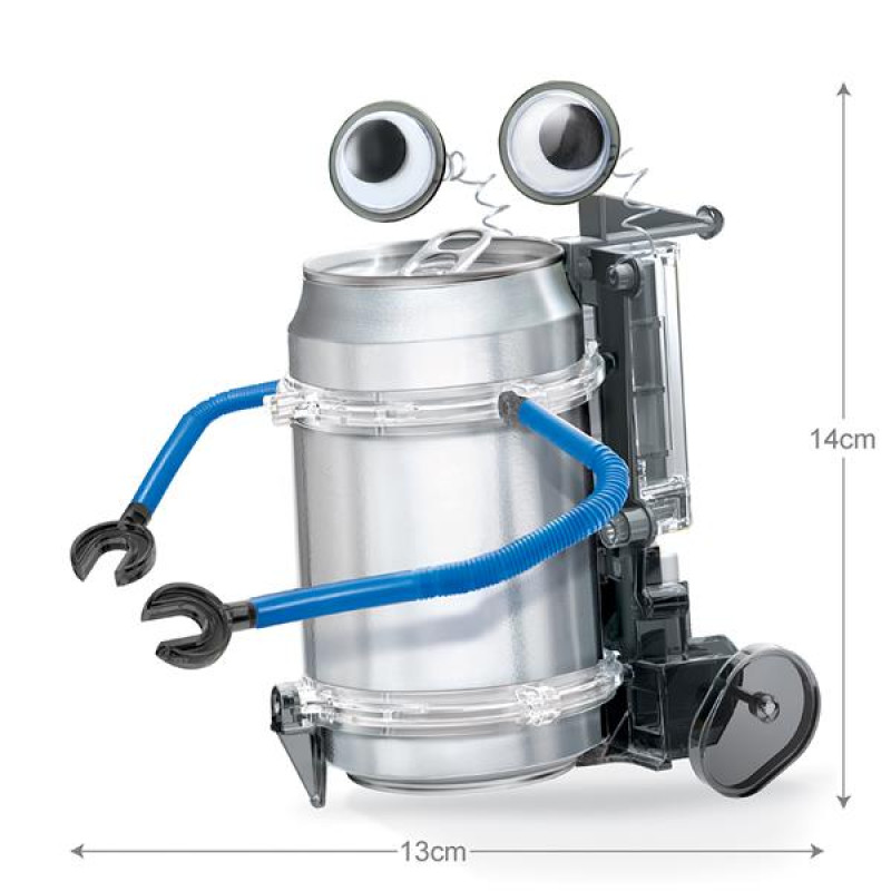 Ви знаєте, що з науковим набором від 4М робота можна зібрати з підручних матеріалів? Наприклад, за допомогою металевої банки з-під напою можна створити робота-жерстянку і навчити його кумедно пересуватися у двох різних положеннях.Підготуйте заздалегідь батарейку, невелику хрестоподібну викрутку і порожню чисту жерстянку. Уважно прочитайте інструкцію. Як працює механізм? Батарея живить мотор, що змушує шестерню швидко обертатися. Вона є редуктором і передає рух на зубчасте колесо. Пластикові ніжки на кінцях осі також починають обертатися і рухають робота вперед. Пересування роботів #8211; це одне з найскладніших завдань у робототехніці. Найчастіше, роботи пересуваються за допомогою колес або гусениць, а деякі #8211; стрибають або роблять сальто. Найскладніший вид пересування #8211; це ходьба. Вчені та інженери досі розробляють технології, щоб роботи могли ходити, як люди.Робот-жерстянка зможе ходити або повзати #8211; залежно від положення. Замініть деталі згідно з інструкцією і розмістіть робота горизонтально.Комплект буде цікавий дітям молодшого шкільного віку від 8 років. Набір із серії KidzRobotix підходить для вивчення основ механіки, розвитку дрібної моторики, уяви, інтелекту, винахідливості.У наборі:Обідок для корпусу #8211; 4 шт. Коротка ніжка #8211; 1 шт. Довга ніжка #8211; 1 шт. Рука-клешня #8211; 2 шт. Тримач для соломинок #8211; 1 шт. Соломинка #8211; 2 шт.Мотор #8211; 1 шт. Болт із гайкою #8211; 4 шт. Ковпачок затиску #8211; 2 шт. Відсік для батареї #8211; 1 шт. Зіниця #8211; 2 шт. Основа для очей #8211; 2 шт. Пластикова нога #8211; 2 шт. Кришка для мотора #8211; 1 шт. Вісь із зубчастим колесом #8211; 1 шт. Панель корпусу #8211; 1 шт. Дріт #8211; 2 шт.Інструкція #8211; 1 шт.