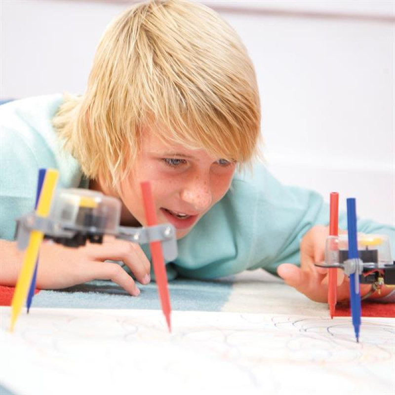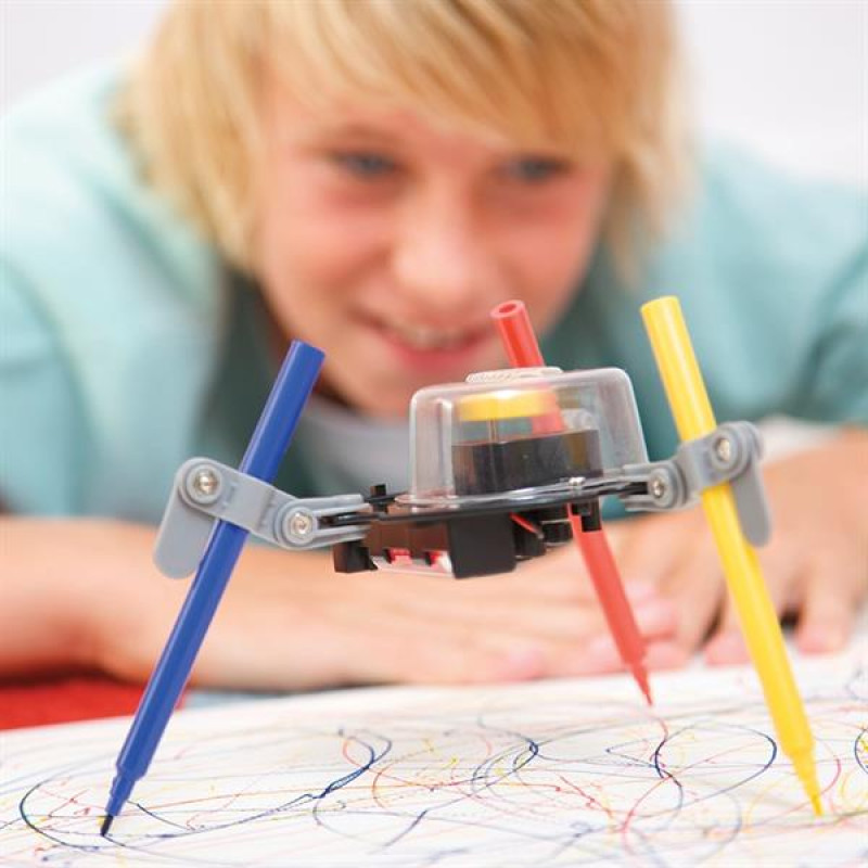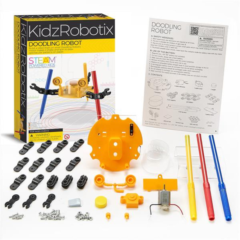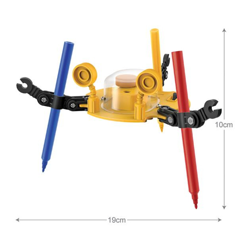 Робот-художник із наукового набору від 4М стане вам справжнім творчим другом! Створіть разом із ним шедевр, яким зможете прикрасити стіни своєї кімнати, і вивчіть будову робота, ознайомившись на його прикладі з основами механіки.Зібрати робота допоможе детальна інструкція. Крім неї вам також знадобиться батарейка, маленька хрестоподібна викрутка і великий аркуш паперу. Коли робот буде готовий, встановіть фломастери у спеціальні тримачі та насолоджуйтеся творчістю! Робот вміє креслити кола, рівні лінії, а також довільні візерунки. Застосуйте фантазію: переставте фломастери і змініть положення тримачів, та подивіться, що буде!Набір із серії KidzRobotix дозволить дитині дізнатися про робототехніку, розвинути логічне мислення та уяву.У наборі:Основа робота #8211; 1 шт.Мотор із дротами #8211; 1 шт.Кришка двигуна #8211; 1 шт.Важіль #8211; 1 шт.Прозора кришка #8211; 1 шт.Допоміжна деталь для рук #8211; 3 шт.Тримач для фломастера #8211; 6 шт.Наконечник для руки #8211; 3 шт.Фломастер #8211; 3 шт.Кришка для батарейки #8211; 1 шт.Око робота #8211; 2 шт.Клейка вкладка #8211; 1 шт.Клемна кришка #8211; 2 шт.Болт #8211; 11 шт.Гайка #8211; 11 шт.Гвинт #8211; 5 шт.Інструкція #8211; 1 шт.